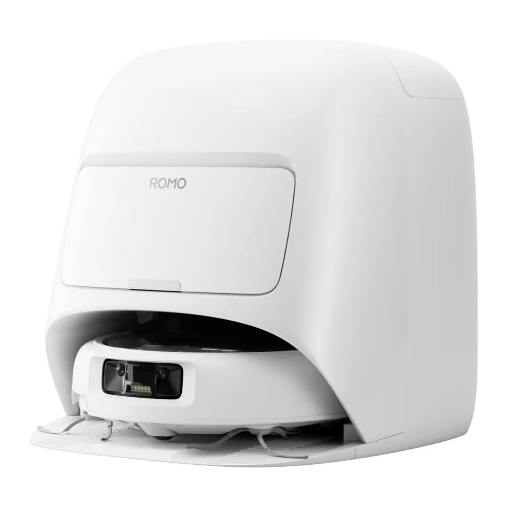 Базовая станция с функцией горячей мойки и сушки промывает насадки и собирает пыль в контейнер на 2.4 л. Раздельные баки для чистой (4 л) и грязной (3.2 л) воды позволяют неделями не касаться устройства. Прозрачный корпус подчёркивает точность механики, а система шумоподавления делает работу почти неслышной — DJI ROMO A органично впишется в умный дом и позаботится о чистоте без вашего участия.