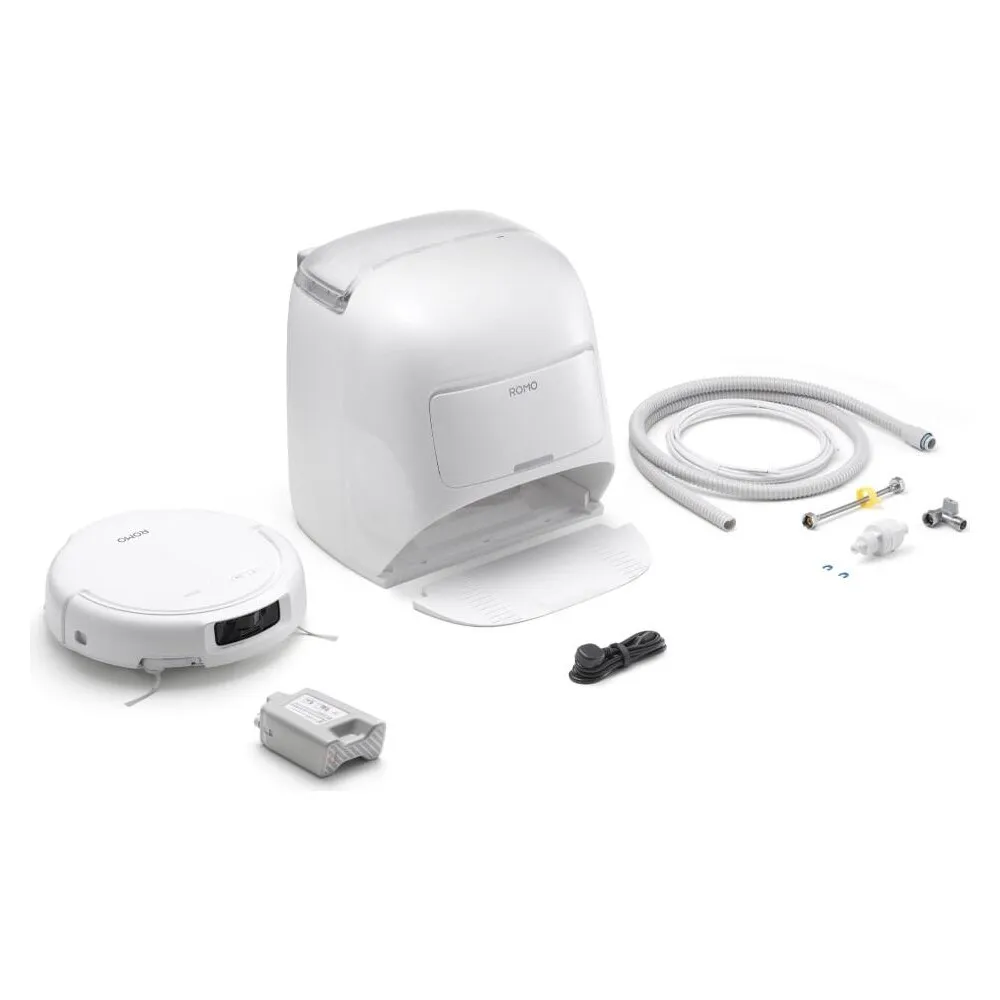 Робот-пылесос DJI ROMO S ×1; Базовая станция (автоподача/слив) ×1; Базовая пластина ×1; Шнур питания ×1; Очиститель для дезинфекции ROMO ×1; Комплект автоподачи и слива воды ×1