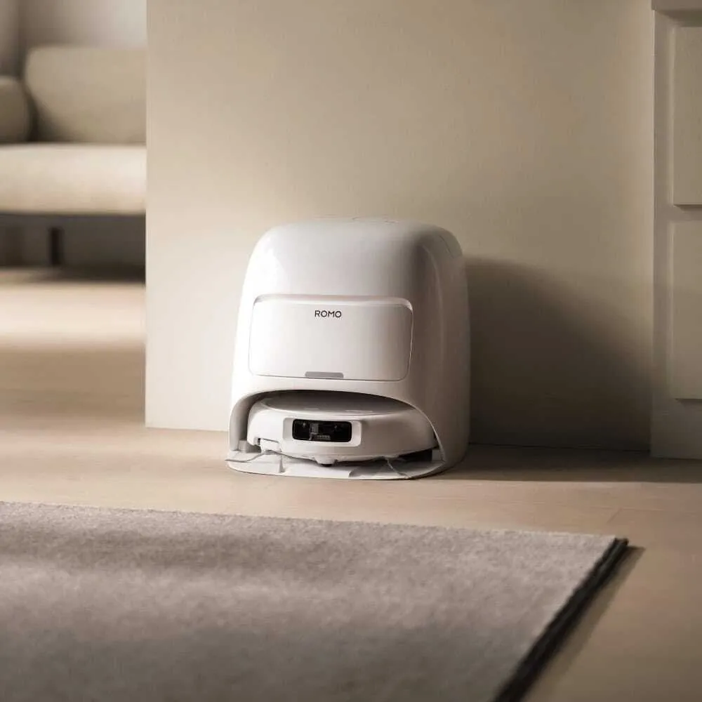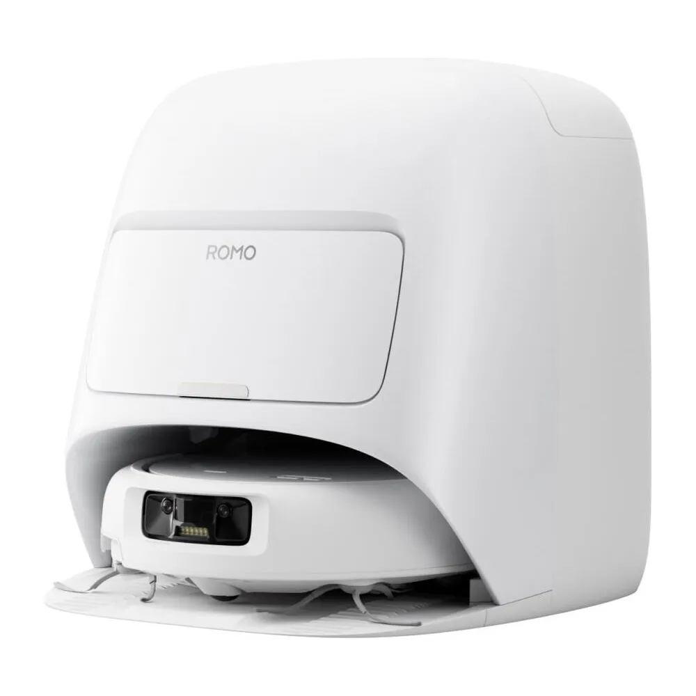 Белый корпус подчёркивает минималистичный дизайн и делает устройство универсальным для любого интерьера. Трёхуровневая система шумоподавления обеспечивает почти бесшумную работу, а базовая станция автоматически очищает и сушит швабры, опустошая контейнер пылесоса в собственный бак 2.4 литра. Всё это превращает ежедневную уборку в простой и автономный процесс.